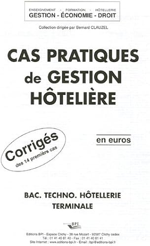 Amazon - Cas pratiques de gestion hôtelière Bac techno ~ Noté /5. Retrouvez Cas pratiques de gestion hôtelière Bac techno hôtellerie Tle : Corrigés de 14 premiers cas by Bernard Clauzel (2004-12-01) et des millions de livres en stock sur Amazon. Achetez neuf ou d'occasion