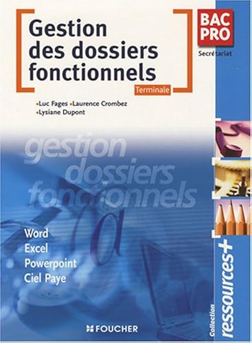Ressources plus Gestion des dossiers fonctionnels Tle Bac ~ Gestion des dossiers fonctionnels. Ce nouvel ouvrage de la collection Ressources +, tout en couleurs et dans une maquette attrayante, s’adresse aux élèves de Terminale Bac pro Secrétariat. Les 3 grandes catégories de dossiers du pôle “gestion des dossiers fonctionnels” sont abordées : - les dossiers clients, - les dossiers fournisseurs,